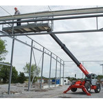 Телескопический погрузчик Manitou МT1740 может выполнять различные строительные задачи. С его помощью можно провести погрузку (на высоту 17м) поддонов с кирпичами, блоков, досок, кровельных материалов, а также перегрузку сыпучих строительных материалов.